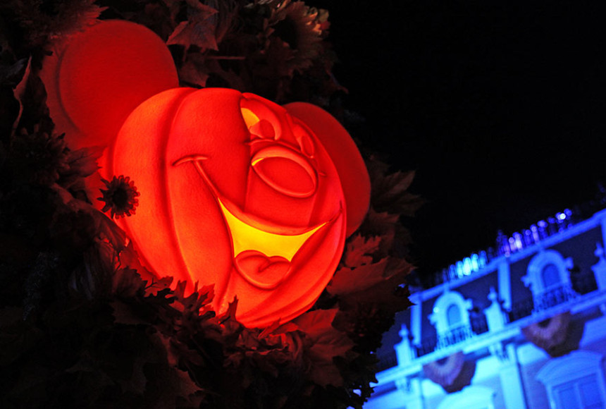 Os prédios do parque ficam com um visual especial durante a Festa de Halloween do Mickey