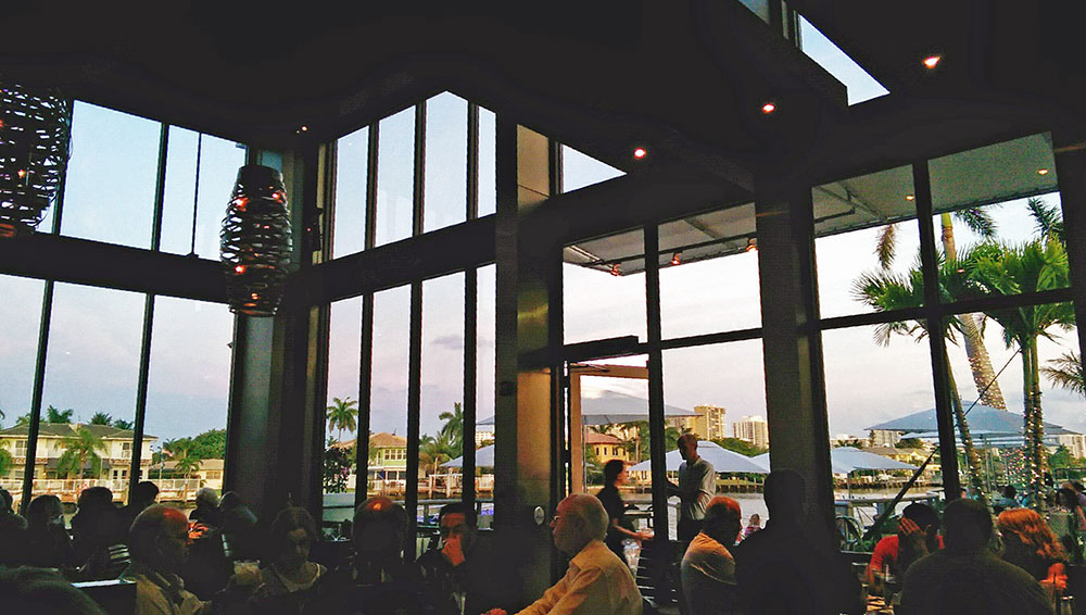 E que bom que eu achei este restaurante. Ele fica dentro do contexto da Fort Lauderdale Marina, um lugar muito bonito. E o restaurante faz jus à sua localização, ele poderia ser comparado ao Two Georges com relação à localização privilegiada no canal, mas tem uma arquitetura bem mais sóbria e elegante.
