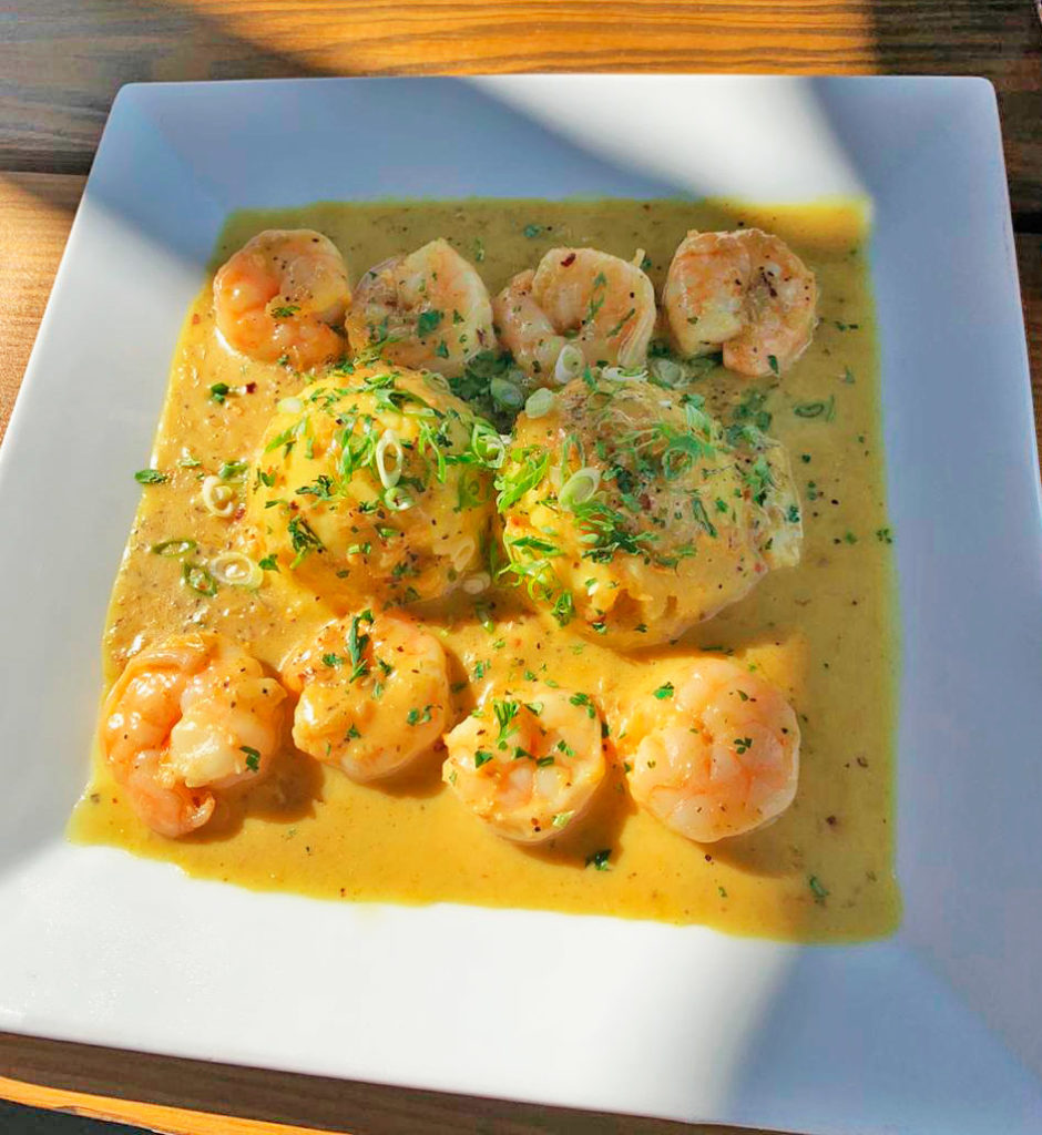 Minha moqueca de camarão no Restaurante The Pirate Republic, à beira do canal (New River) em Fort Lauderdale