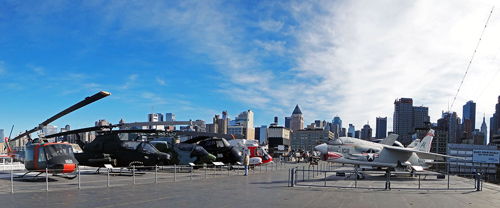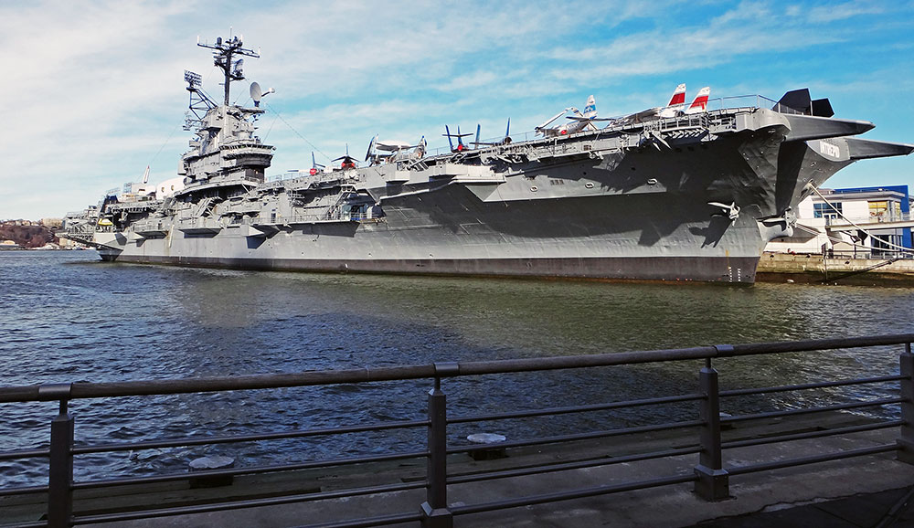 O Intrepid é um museu que fica dentro de um porta-aviões. Há partes externas também, como um submarino e há vários aviões no deck superior do porta-aviões. Entre eles há um Concorde e um ônibus Espacial.