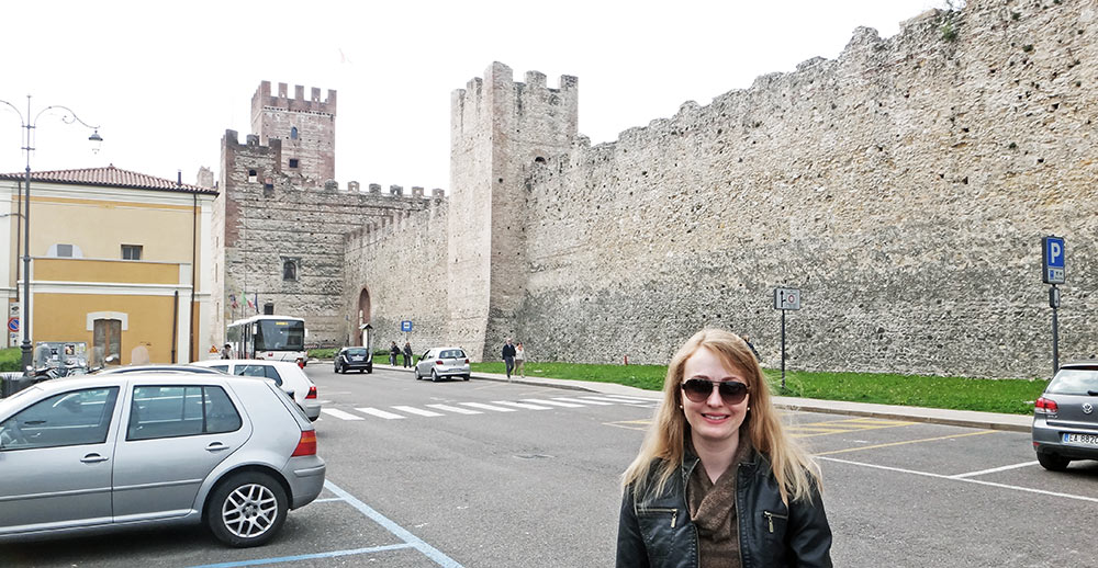 Você pode estacionar perto do portão que dá acesso à cidade antiga. Já logo ao estacionar você vê a grandiosidade da muralha, que, na parte onde você estaciona, está no mesmo nível que você, mas que, ao longo do perímetro da cidade, sobe a montanha que está por trás de Marostica. Um visual incrível.
